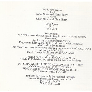39 Steps came together in Montréal in 1984 when Chris Barry—fresh off the wreckage of The 222’s and a harrowing London stint—reunited with Pierre Major (guitar) and Joe Cerratto (bass), adding Richard Paul (guitar) and André Gagné (drums). Where the 222’s were a teenage punk broadside, 39 Steps sharpened the edges into something darker and cinematic: hard-charging, goth-tinged rock built for midnight clubs and last-chance shots. Within six months they were at Studio Victor cutting a self-titled EP for Line Records, with “Slip Into the Crowd” and “Sex in Miami” announcing the band’s balance of menace and melody. A move to New York under manager Steven Shipp followed, and an audition landed them on screen in Woody Allen’s Hannah and Her Sisters, performing “Slip Into the Crowd” at CBGB—an era that brought MTV rotation and a 1987 full-length, Slip Into the Crowd (RCA/TGO), before the major-label gears ground to a halt.