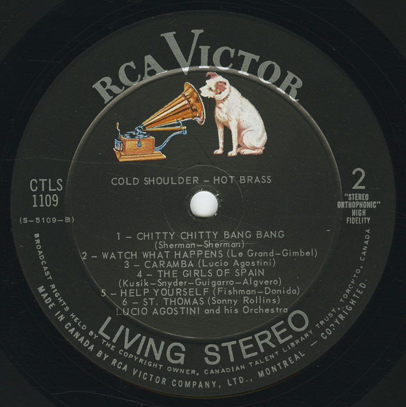 Agostini’s recordings for the Canadian Talent Library further showcased his versatility, with albums such as Mas Mucho Lucio (1968), which featured his original compositions Leah’s Latin Lover, Caramba, and Black Rose, and Cold Shoulder and Hot Brass, a brassy set of standards and originals. His centennial soundtrack Once Upon a Hundred Years (1967), recorded with Moe Koffman, Rob McConnell, Guido Basso, and other leading Canadian jazz musicians, remains a vibrant time capsule of the optimism and energy of 1960s Canada.