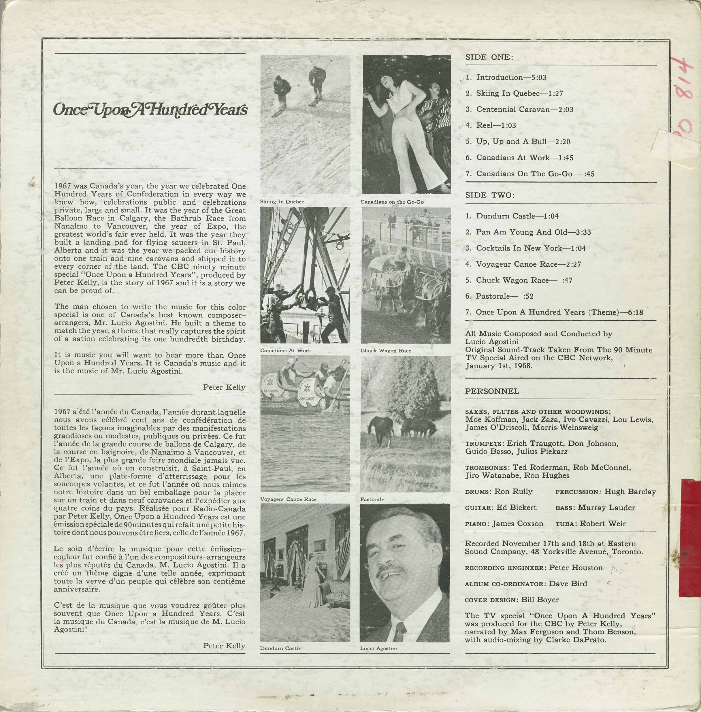 L’homme choisi pour écrire la musique de ce numéro spécial en couleurs, fut M. Lucio Agostini, un des arrangeurs-compositeurs les mieux connus au Canada. Il écrivit un thème à l’image de cette année, un thème qui exprime réellement l’esprit d’une nation qui célébrait son centième anniversaire.