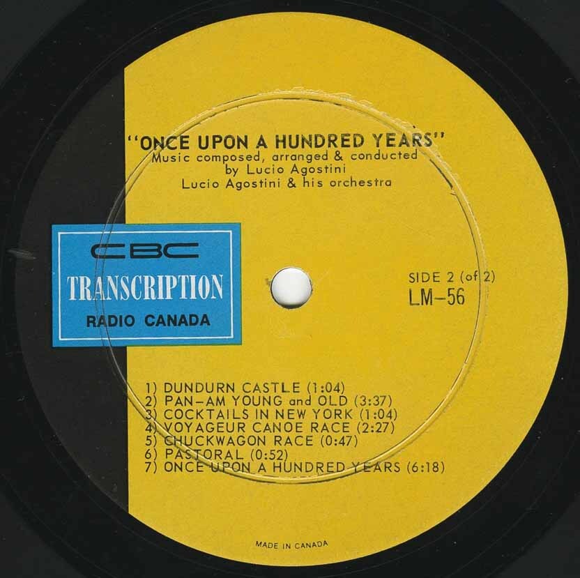 Agostini’s recordings for the Canadian Talent Library further showcased his versatility, with albums such as Mas Mucho Lucio (1968), which featured his original compositions Leah’s Latin Lover, Caramba, and Black Rose, and Cold Shoulder and Hot Brass, a brassy set of standards and originals. His centennial soundtrack Once Upon a Hundred Years (1967), recorded with Moe Koffman, Rob McConnell, Guido Basso, and other leading Canadian jazz musicians, remains a vibrant time capsule of the optimism and energy of 1960s Canada.
