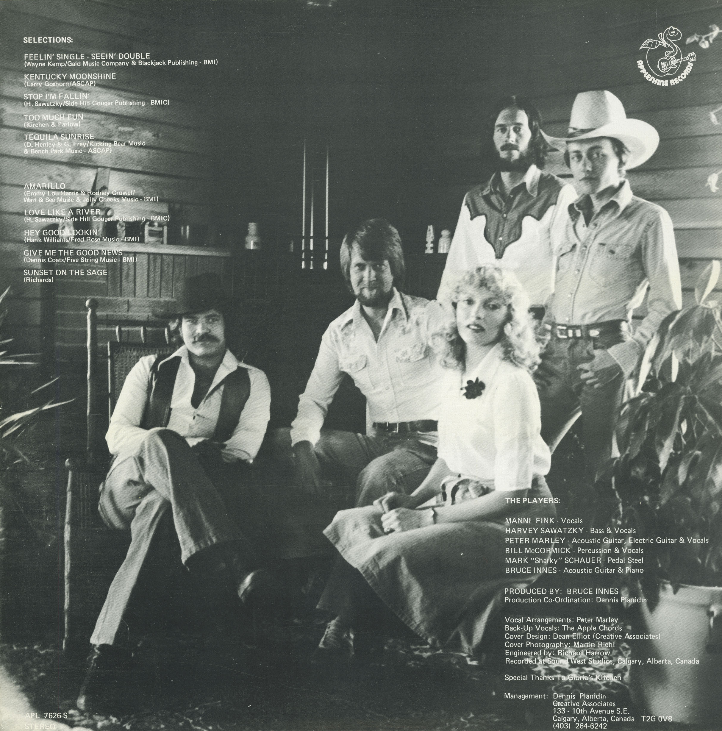 Guitarist and vocalist Peter Marley, a versatile player who later became a respected Calgary music instructor, shaped the group’s arrangement style and played a key role in broadening their sound. The rhythm section gained depth with Bill McCormick on percussion and vocals, while pedal-steel player Mark “Smoky” Schauer added the country edge that became a defining part of Appleshine’s audio identity.