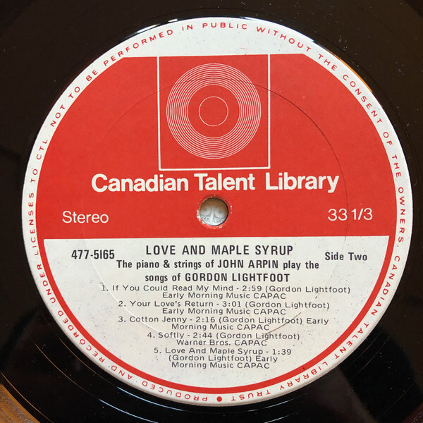 Arpin, John - Love and Maple Syrup: John Arpin Plays Lightfoot