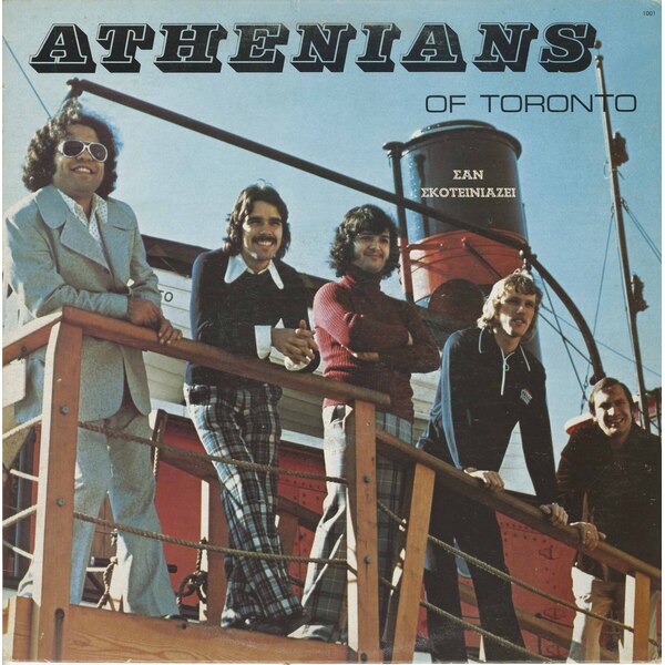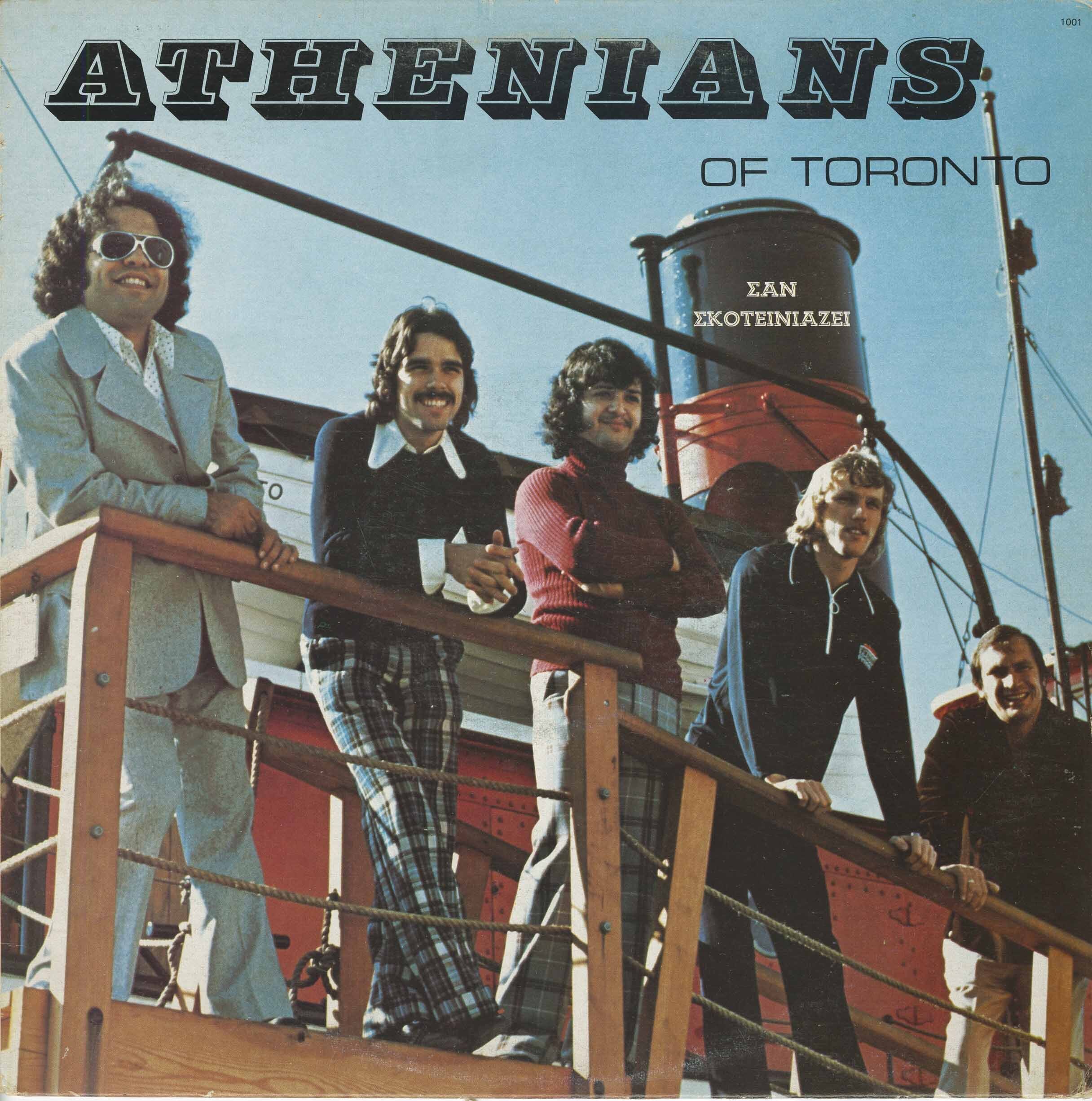 The Athenians of Toronto were a Greek band from Toronto, Ontario who gave away and sold a few copies of this album, San Skoteiniazei, which was recorded on their own private label, The Athenian Record Company. It's probably the best Canadian cover tune album of all-time - certainly my favourite! Definitely the best non-Anglo-Franco album recorded by Canadians in Canada. The album features three originals as well as four Chicago covers; also covers of Santana, The Doors, Lighthouse, and Credence Clearwater Revival.