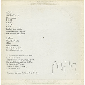 The album’s B-side finds Bell’s squealing sax in heated conversation with double bassist Lisle Ellis and pianist Paul Plimley, who later became acclaimed free-improv figures. Bell stayed the course as well, sharing stages with Miles Davis and James Blood Ulmer, and remaining a fixture on Vancouver’s avant-garde scene while working in the jazz department at A&B Sound. Four decades later, the unearthing of his Necropolis still sounds like a graveyard smash.