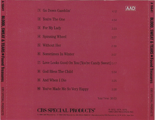 Found Treasures CD case back cover