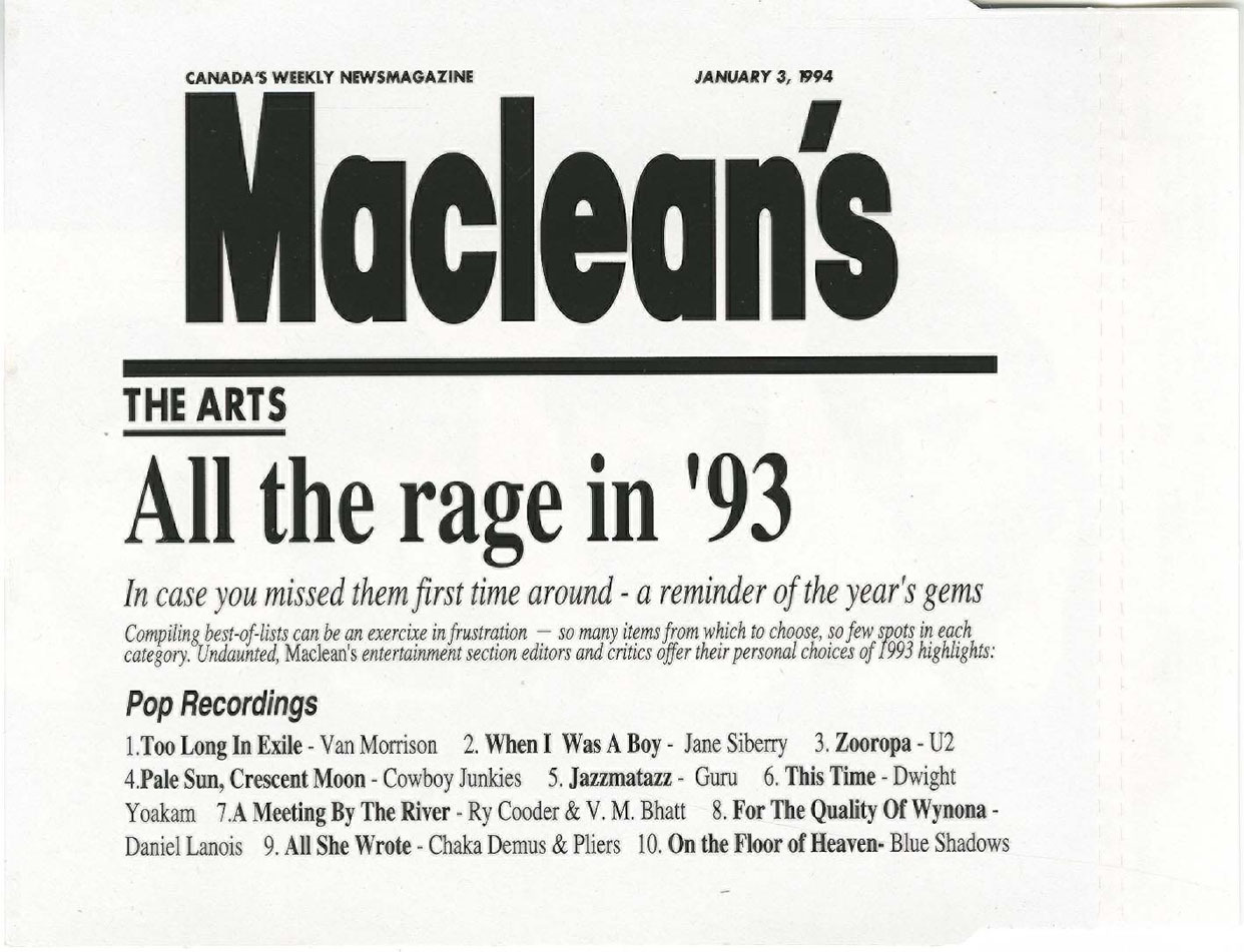 It was a good year for songs like Whitney Houston's "I Will Always Love You" and Tag Team's "Whoomp! (There It Is)," but 1993 was not a kind year in which to release an album of densely textured country-rock songs like On the Floor of Heaven by the Vancouver band The Blue Shadows. The dozen original songs on this debut album owed more to Sweetheart of the Rodeo, the 1968 album by The Byrds, than it did to anything current in 1993. Heard now, however, the songs sound timeless, reaching back and forth across decades of pop music, from the '50s to the present.