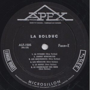 Through the generosity of fellow musicians, Mary Bolduc quickly learned her trade and began to compose melodies. Radio broadcasts spread her reputation. The budding author-composer had never dared dream of a career when, in 1929, the head of Starr records offered her a contract for five 78" records.