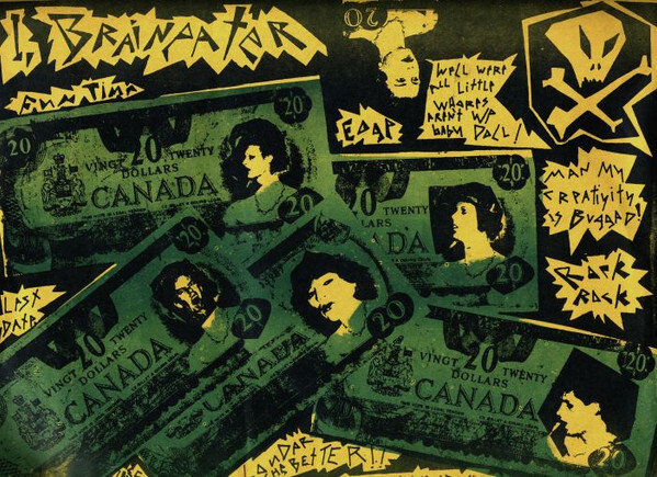 reissued on Super Electro, 1996. The master mind of Jim Cummins from Vancouver. The 1979 'Braineaters' EP was a punk manifesto and featured guest appearances by Buck Cherry (Modernettes) and "Art Bormann" (aka Art Bergmann) of K-Tels/Young Canadians fame. Cummins later changed the name to I, Braineater and did experimental electronic material. Came in a silk screened 8-1/2" manilla envelope. Although it says "I, Braineater" on the sleeve, the group was known as the Braineaters at that time.