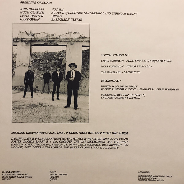 Breeding Ground rose out of East York, Toronto in 1981, a cold-wave trio built around singer John Shirreff, guitarist Hugh Gladish, and bassist Jonathan Strayer. Their earliest rehearsals took place in unfinished basements and rented practice rooms on the east side, with original drummer Ken Jones reportedly living out of a van parked in the driveway, ready to play at a moment’s notice. From the beginning their sound leaned toward the darker edges of the post-punk movement: Strayer’s melodic yet driving bass lines, Gladish’s wiry, echo-drenched guitar, and Shirreff’s cool, unforced baritone created a mood that placed them in the lineage of Joy Division and early New Order, even while they were still unknown outside the local club circuit. Managed by friend David Hart, who also designed their stark stage lighting, the group hustled through what band members have described as “dozens” of shows on Toronto’s Queen Street West scene before they ever set foot in a studio.