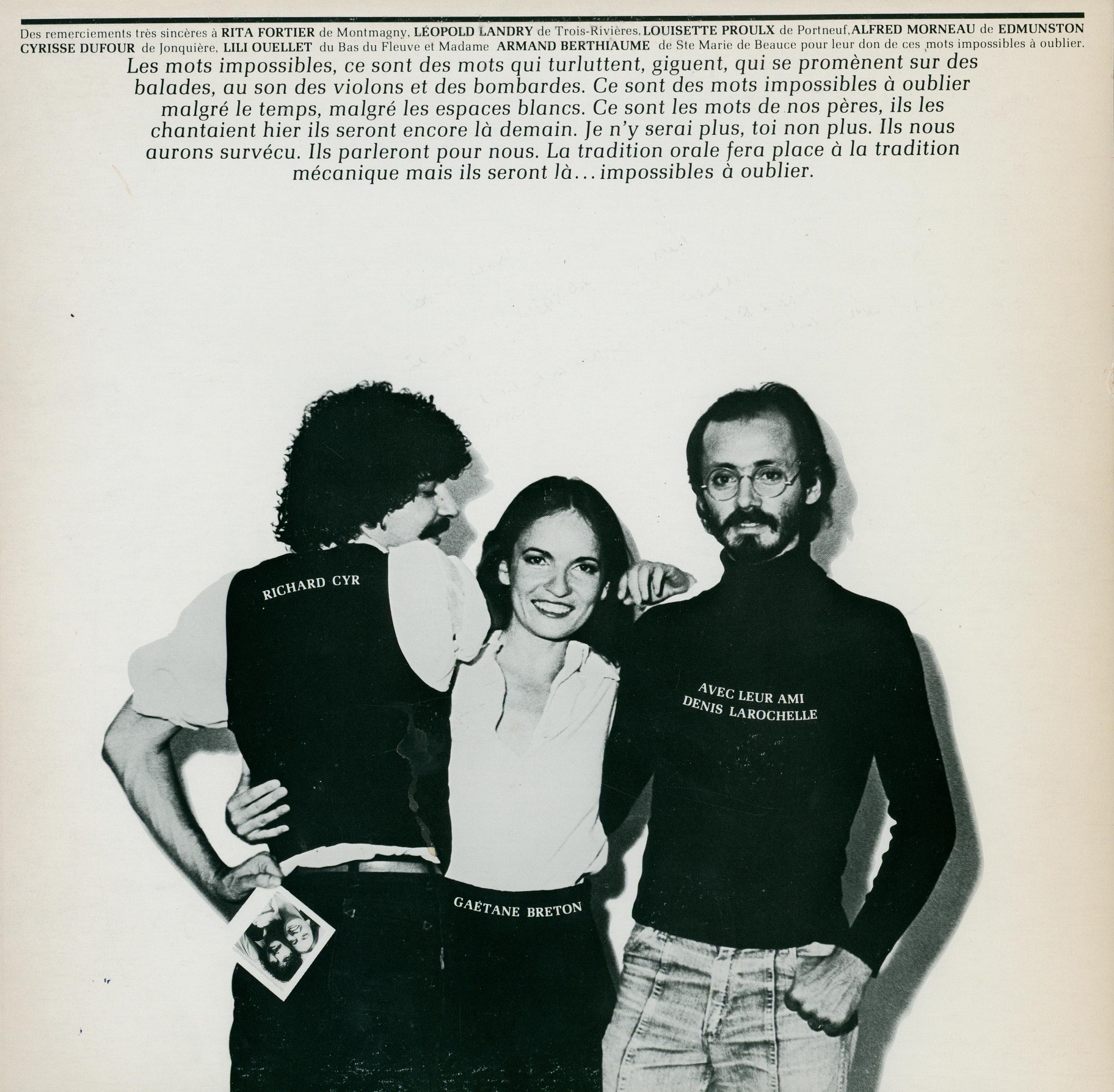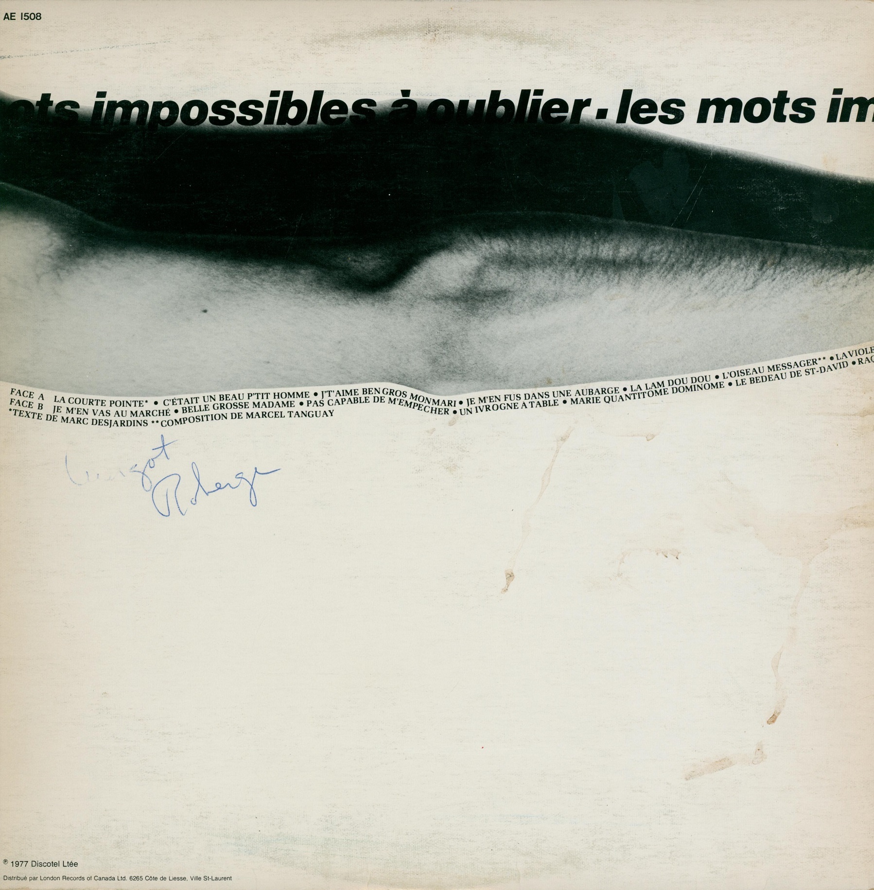 Les mots impossibles à oublier Record sleeve (back)