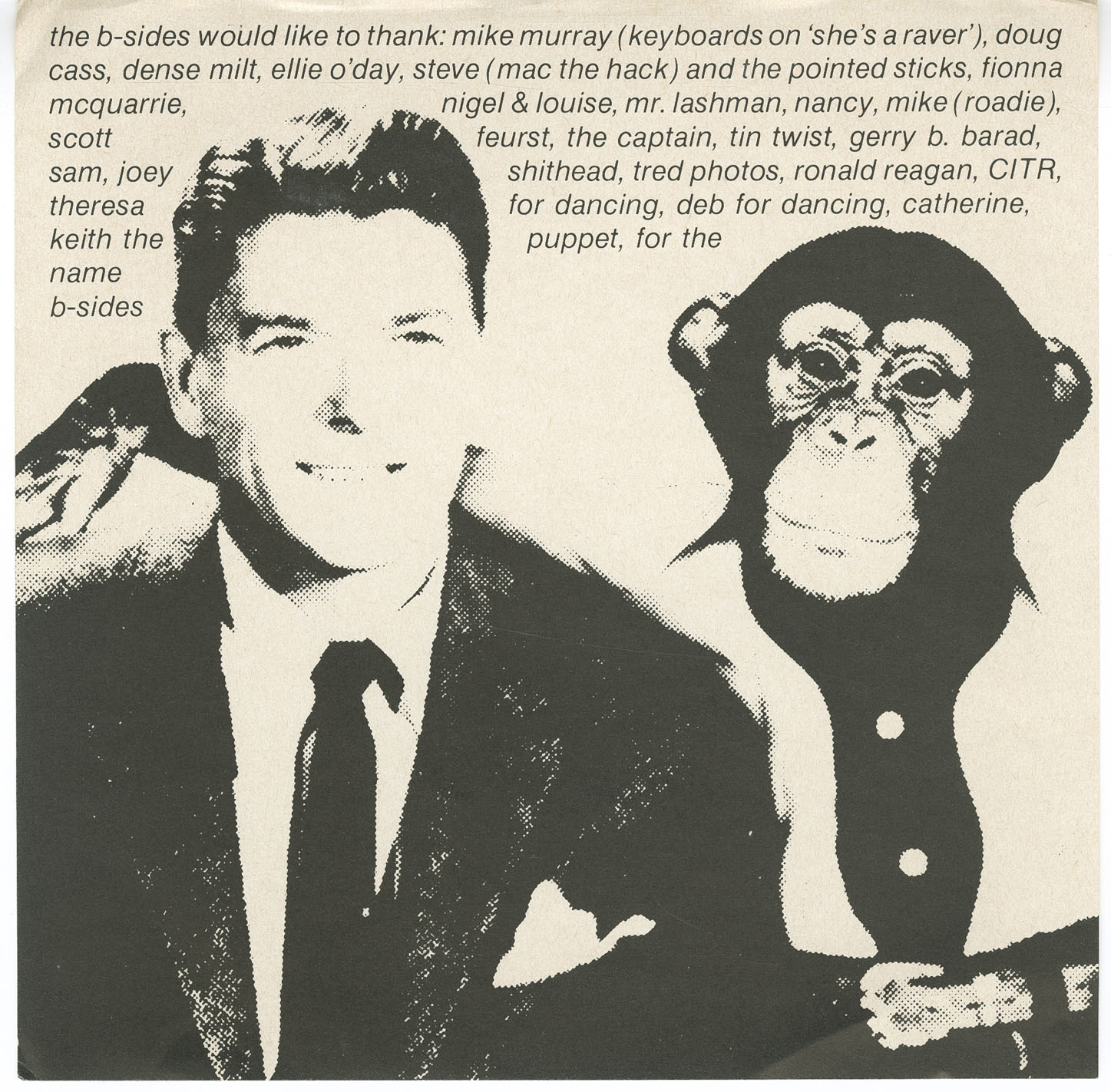Mike Murray (keyboards on “She’s a Raver”), Doug Cass, Dense Milt, Ellie O’Day, Steve (Mac the Hack) and the Pointed Sticks, Fionna McQuarrie, Nigel & Louise, Mr. Lashman, Nancy, Mike (roadie), Scott, Feurst, The Captain, Tin Twist, Gerry B. Barad, Sam, Joey, Shithead, Tred Photos, Ronald Reagan, CITR, Theresa, Deb (for dancing), Catherine, Keith, Puppet, and “the name B-Sides.”