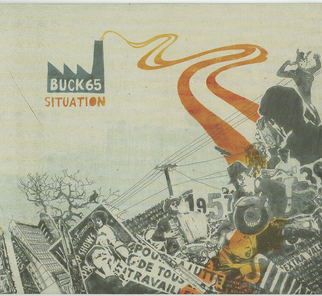 But Situation, by most counts Buck 65's 11th release, is a long look backward. Fifty years, to be precise. He sees 1957 as a once-in-a-century watershed (kind of like 1968), with both the space race and the Beat movement muscling into history. The album even borrows from Allen Ginsberg's counterculture lament "Howl" with Buck 65 deadpanning, in his smoke-singed growl, the iconic words: "The best minds of my generation were destroyed by madness." Little tributes to the period seem to rain chaotically over the canvas, only to be reordered into Buck's suave collage of rhyme and reference, equal parts Ginsberg and Wikipedia.
