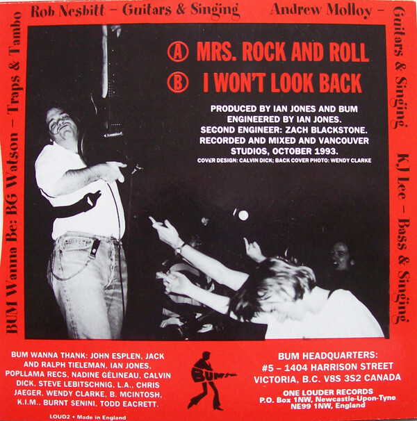 Throughout 1993 and 1994, Bum maintained an active international profile through split releases with bands such as Teengenerate, Innerface, The Smugglers, and Fifi + The Mach III, as well as the live album Shake Town! Recorded Live (1994), captured at Madrid’s Revolver Club during a European tour. These releases documented Bum as a high-energy live act and underscored their close ties to the global underground punk network of the era.