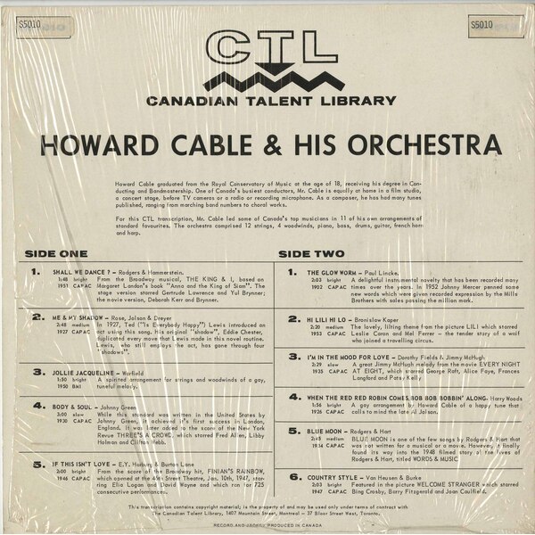Label: Canadian Talent Library CTL 5010, Canadian Talent Library CTL 1010
