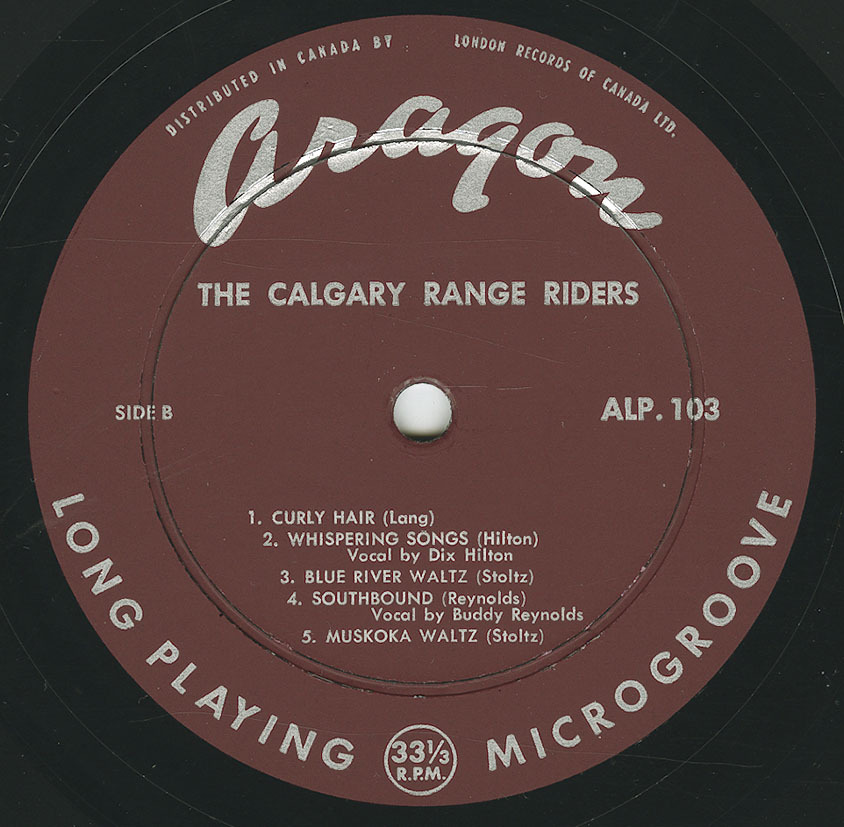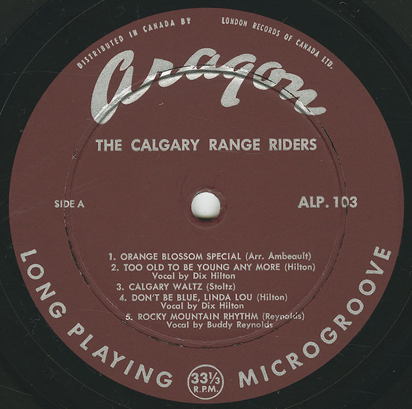 The Range Riders recorded for both Aragon Records in Vancouver and Apex Records in Toronto. Their Aragon debut (catalog 201) paired “Don’t Be Blue, Linda Lou” with “Calgary Waltz,” followed by “Orange Blossom Special” / “Too Old to Be Young Anymore.” On Apex, they issued “Thousand Miles at Sea” / “Careless Ways” and “Reward” / “Midnight Waltz.” Hilton wrote most of the group’s material and claimed to have composed over two hundred songs, many inspired by prairie life and maritime imagery from his years stationed on Canada’s coasts.