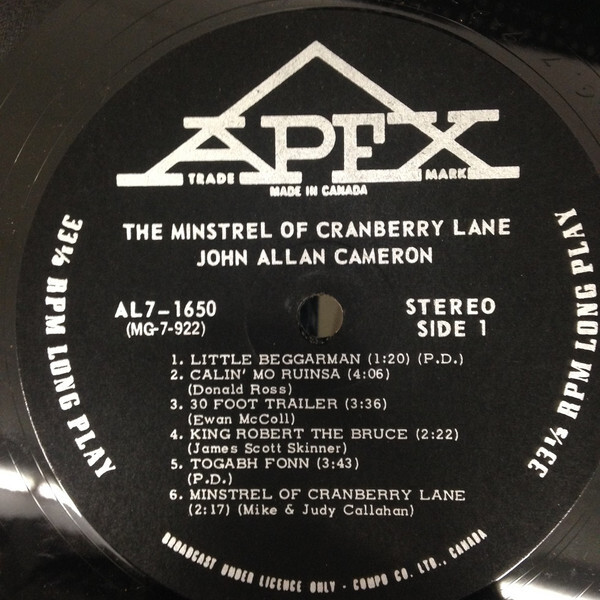Cameron, John Allan - The Minstrel of Cranberry Lane Side 1