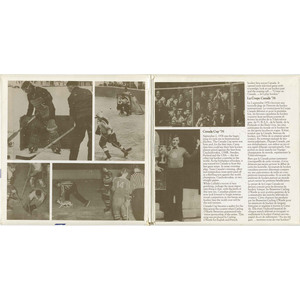 The cover of this record is a similar design to the front of the Canada Cup game program. The half maple leaf represents the Canada Cup itself, which was designed by the Brewery’s Art Director, Ralph Huencking.