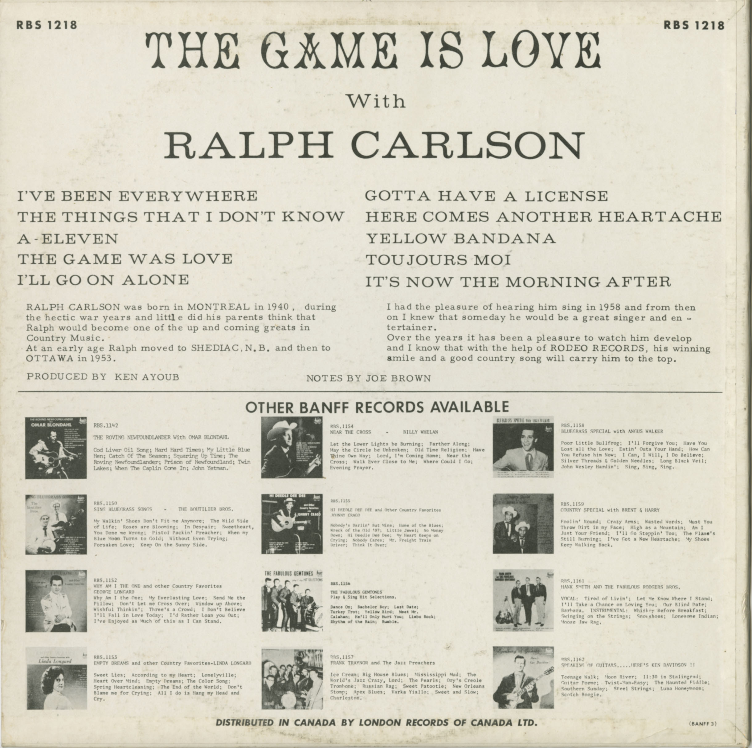 Ralph Carlson - The Game is Love BACK