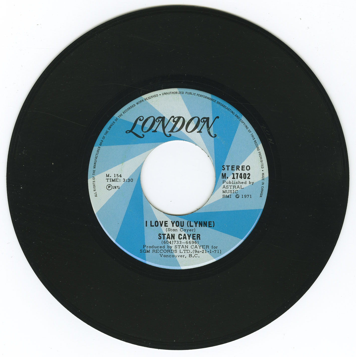 Returning to Vancouver with his Nashville masters, Cayer explored releasing the recordings through established labels. Jerden Records in Seattle expressed interest, but Cayer declined due to contractual concerns. Instead, he chose to retain control of his work by founding SGM Records, named after his initials, along with Astral Music Publishing. When the first single—featuring “3 Wild Women”—was pressed, Cayer personally took it to CFUN Radio, presenting himself under the alias “Mel Gordon,” his fictional manager. According to Rutherford, who accompanied him, their initial plan was to purchase advertising to promote the record, but when that was refused, they relied on informal airplay tactics, including encouraging listeners to flood an evening request-and-vote program with calls. The strong response quickly pushed the song into regular rotation, helping it become a local hit. The record ultimately reached the Top 10 in Vancouver and performed strongly on Vancouver Island as well.