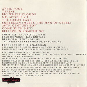 The EP contained two singles: "April Fool", a Top 10 hit in Canada, with its U2-like guitar chords, and "Me, Myself and I" also a Top 10 Canadian hit.