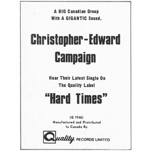 Emerging from Toronto’s fertile late-1960s music scene, Christopher Edward Campaign was a large-format soul-rock ensemble that fused brass-heavy arrangements with driving rhythm & blues energy. Though they released just two singles on Quality Records, the group carved out a visible presence in the Canadian music press and featured a lineup of accomplished players who would go on to notable careers in music and beyond.
