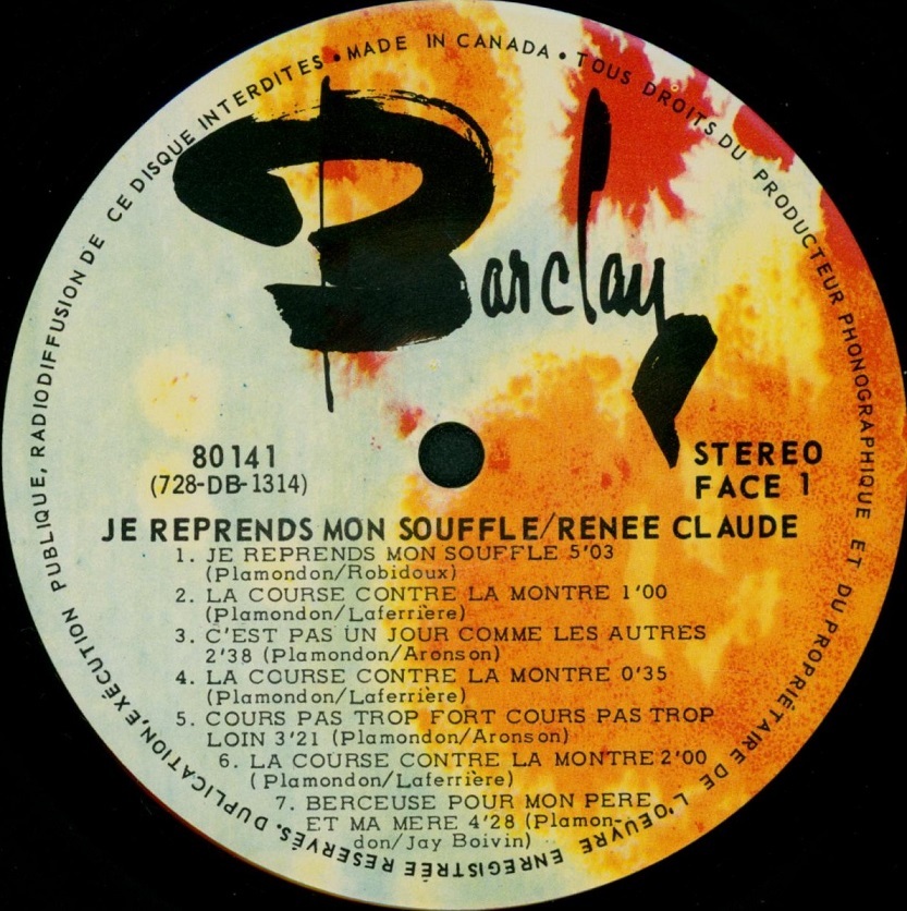 Je Reprends Mon Soufle Record sleeve (front)