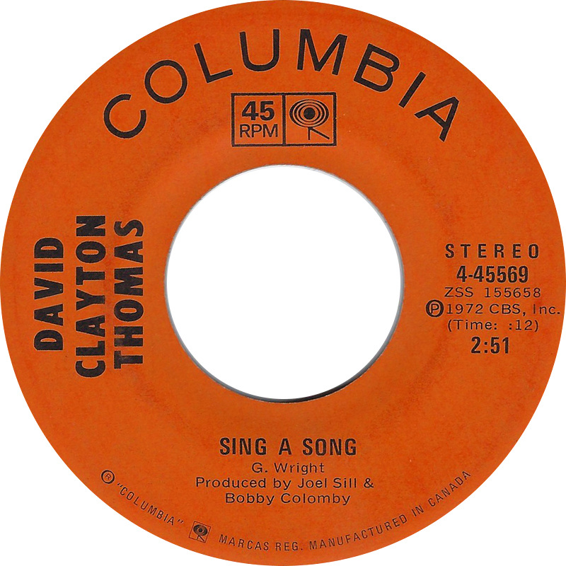 Clayton-Thomas, David - Sing A Song b/w We're All Meat From The Same Bones