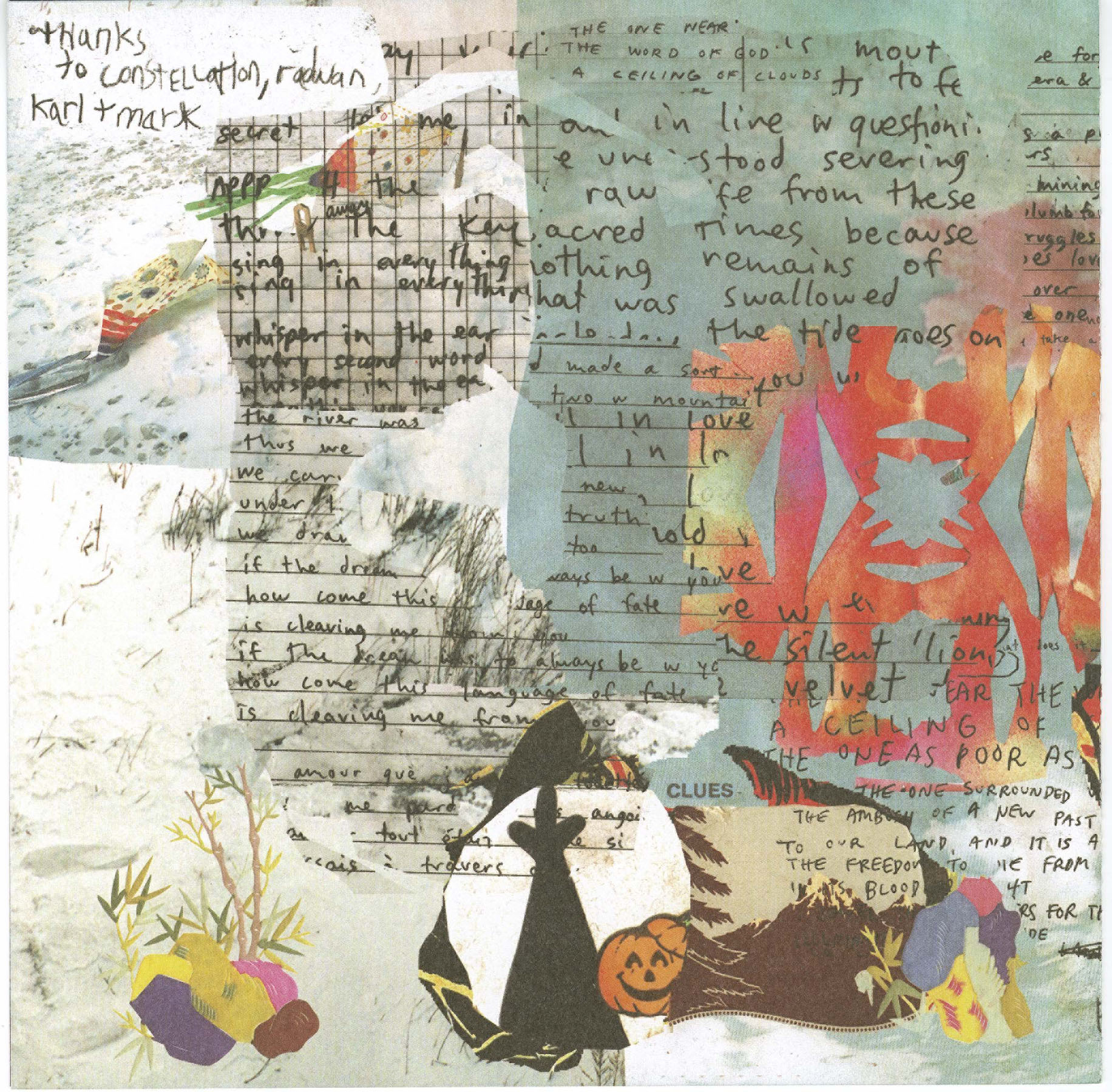 Penner’s voice, guitar and unique lyrical vision now guide Clues, with humble authority, originality and intent. Wedded to Reed’s superlative compositional and arranging acumen (and awesome drumming, among other instrumental skills) and abetted by multi-instrumentalists Ben Borden (Les Automates de Maxime de la Rochefoucauld), Lisa Gamble (Gambletron, Evangelista, Hrsta) and Nick Scribner (Chaotic Insurrection Ensemble), the band delivered sporadic and fantastic local performances through 2008. They then entered the Hotel2Tango studio (with Radwan Moumneh engineering) to lay down eleven songs in a feverish session during a Montreal winter deep freeze. The resulting album radiates a very special warmth and urgency, full of secrets, smiles, snarls and sing-a-longs.