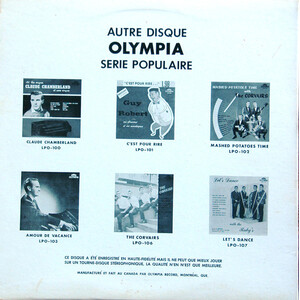 The group broke up suddenly after having burned their two albums for Olympia. They would reform in 1967, exchanging Picotin for a new soloist (Gerry Dusseault) until their dissolution in 1978. All the same! To stand out, the group should have opted for a pseudonym with more trunk. Between you and me, I like the 1959 Corvair, but it's not a Pontiac Bonneville Coupe if you know what I mean. Mashed Potatoes Time, however, testifies in its own way to the sound of the evenings of the Casa Loma or the Domino, Montreal cabarets popular throughout the 1960s. Recorded in a hurry and released discreetly at the pinnacle of instrumental rock, the album remains in constant rotation with your author recently. Looking for the most relevant moments of our modern sound, I recently fell in love with my mates from Miserably Vôtre (subscribe!) For the beginnings of Quebec rock n 'roll. I will soon be offering an overview of other pre-1965 beat albums, notably those by Melody Makers (1963; Plaza PL-3301) and Léo Benoit (1960; Guitare GTL-1923).