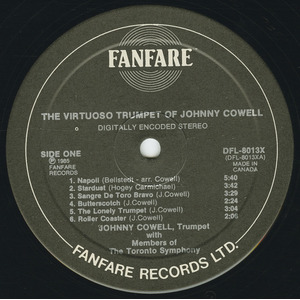 In some ways, The Virtuoso Trumpet of Johnny Cowell is a “cross-over” album, one of those curiously defined records that literally cross the boundaries between pop and classical music. Johnny Cowell was one of the first in the current generation of musicians to meet composers like Bach, Handel, Beethoven, and Satie head on, and to bring his own musical sensibilities and style to their work. Side Two of this album demonstrates how successfully a bridge can be built between the 18th and 19th centuries and the 20th century.