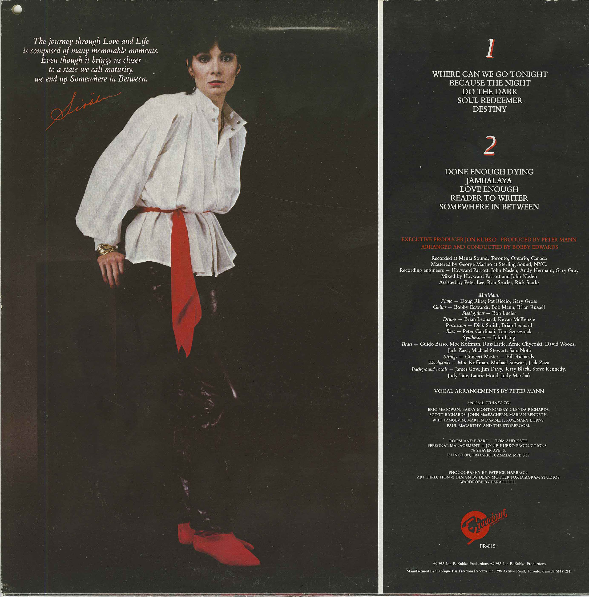 Her debut LP, Somewhere in Between, recorded with producer-arranger Peter Mann, consisted largely of contemporary covers but received strong regional attention and set the stage for more ambitious work. Crawley spent roughly a decade performing full-time across Ontario, often playing double-duty club schedules where her musicians would disguise themselves as a country band for afternoon shows before switching to pop-rock sets at night. These years solidified her reputation as a disciplined, versatile vocalist with a devoted audience following her across venues.