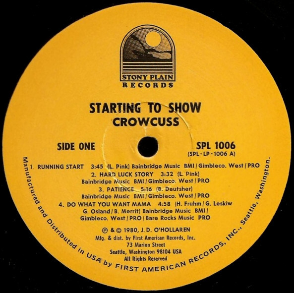 Les Bateman was working at CBC Vancouver at this time and through the acquaintance of his then wife Delby, who was an awesome session singer at the time, Marc LaFrance got his own foot in the door of the Vancouver studio scene as a session singer himself. He has since accumulated innumerable album credits including his own solo effort Out Of Nowhere produced by Paul Dean. Marc has also created a children's television program called Babblebrook and has his own record label, Delinquent Records. Larry has played and recorded with One Horse Blue and Hermann has recently recorded with Mood Jga Jga on their second album. They all have remained in Vancouver. Bill is currently back with the reunited Guess Who. Check out his website at beancakes.com. There you will find a lot of Road Tales as well as the unfinished story of Crowcuss.