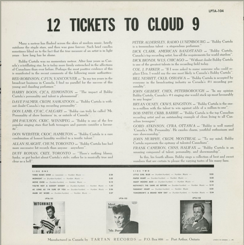 Curtola, Bobby - 12 Tickets to Cloud 9