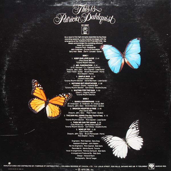 She released a single in 1975 called Keep Our Love Alive (Columbia C4-4095) which spent seven weeks in the Canadian top 40. It entered July 5, 1975 and peaked at number 20 on September 27. She also released the album "This is Patricia Dahlquist" that same year.