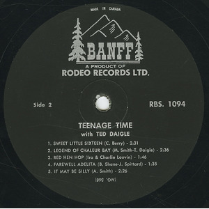 Teenage Time is not only a musical gem but also a highly collectible rarity. As one of the first full-length rockabilly albums recorded and released in Canada, original pressings on Banff Records are incredibly scarce, often sought after by collectors of early Canadian rock & roll. The album’s historical importance was later acknowledged when several of its tracks were featured on Early Canadian Rockers Vol. 4 - Teenage Time with Ted Daigle, solidifying its place in Canada’s rockabilly legacy.