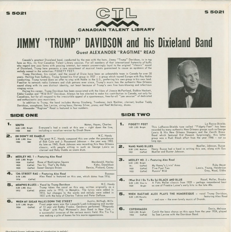 Davidson, Jimmy 'Trump' - Jimmy Trump Davidson and His Dixieland Band with Guest Alexander "Ragtime" Read