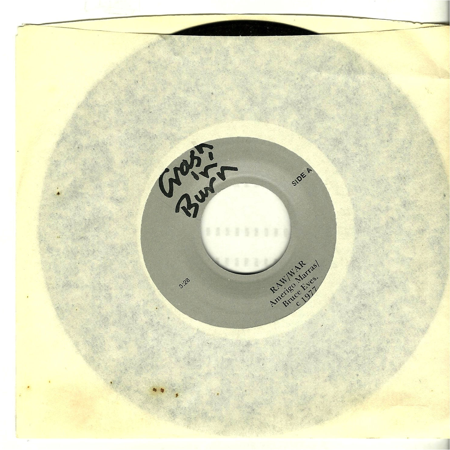 Recorded live on the Crash'n'Burn stage in 1977 by Amerigo Marras and Bruce Eves, the two principles behind CEAC, the Centre for Experimental Art and Comunication, a radical arts group in whose building existed the notorious Crash 'n' Burn, Canada's first punk club. The label logo is by John Catto (Diodes guitarist). The single is notable because it features the first recorded appearance of The Diodes as backing band to Amerigo Marras. The B-side is the first recorded appearance of Mickey Skin, singer for the all-female Curse, doing a spoken word rant.