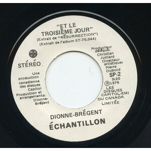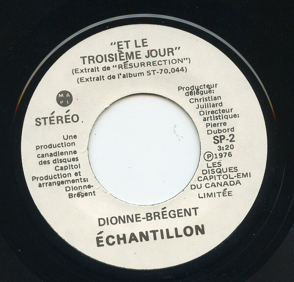 Dionne - Brégent - "...et le troisième jour" (one sided, picture sleeve)