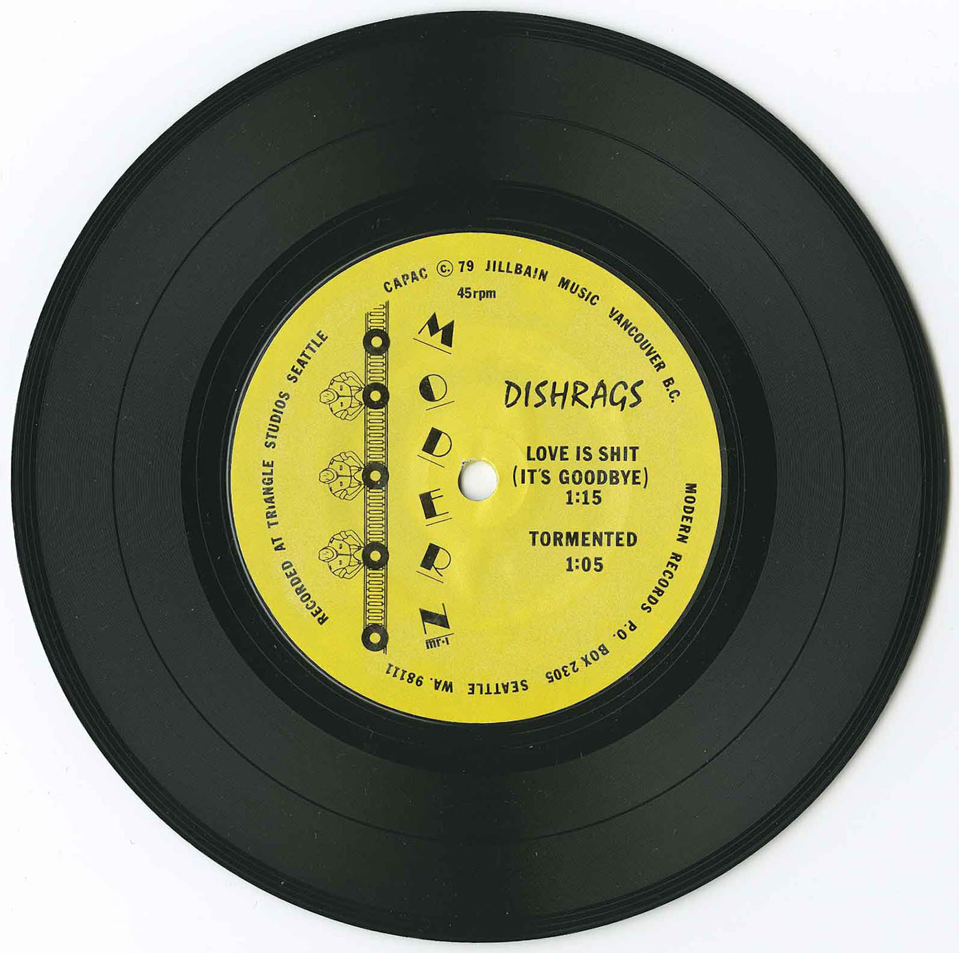 Later that year, the Dishrags recorded their first studio EP, Past Is Past, in Seattle at Triangle Studios (where Nirvana would later cut their debut). The title track, featuring the lyric “Time is catching up to me,” was a lean, emotionally sharp punk-pop song that received alternative radio play and became one of the band’s signature numbers. The EP also included “Love Is Shit,” a darker, moody track that showed the band expanding its sonic palette, and the bristling “Tormented,” which became a live staple. Despite its limited release, Past Is Past solidified the Dishrags’ growing following and led to gigs with the Avengers, more shows with the Clash, and headlining slots in Seattle.