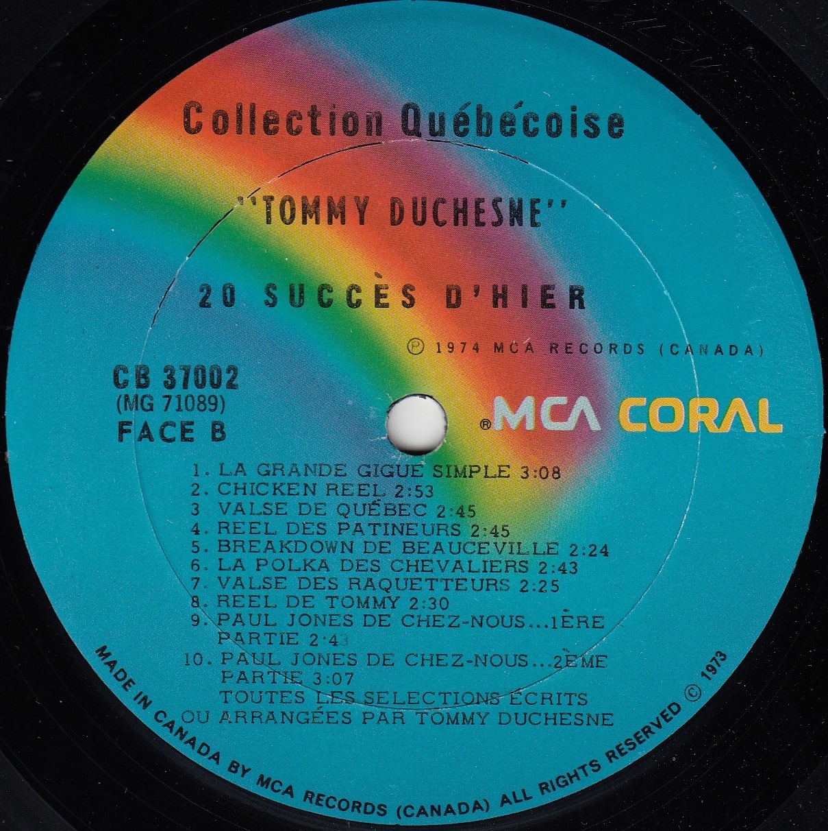 Duchesne, Tommy - Collection Québécoise - 20 Grands Succès D'hier Face B