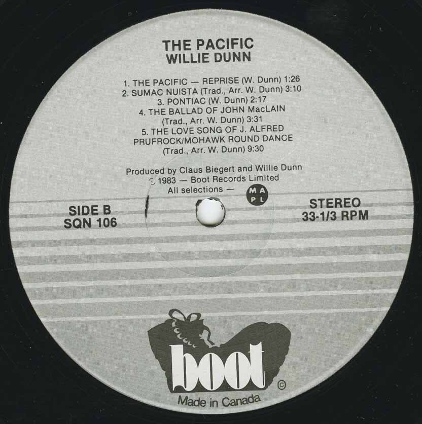 His self-titled debut album Willie Dunn (1971) revealed a songwriter of uncommon moral vision. Songs such as Charlie—about the Ojibwe boy Chanie Wenjack, who fled a residential school and died trying to return home—stand among Canada’s most devastating ballads. A re-recorded version of the same album followed in 1972 for charity. During this period Dunn also collaborated with Vancouver composer Ann Mortifee on music for the celebrated stage play The Ecstasy of Rita Joe, featuring Chief Dan George and Paul Horn, later released on CBC Transcription E-849 (1973) and United Artists / Kerygma Records.