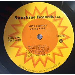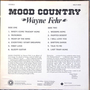 Waye Fehr first performed publicly as a 13 year old winning an amateur talent contest. At age 16 he was touring as part of a travelling band, and in 1969 formed his country group, "Spittin' Image", again touring extensively for the next couple years. In 1973, Wayne Fehr met his wife Rita, who soon joined the Spittin' Image band, and when his uncle showed interest in joining the act, they changed the group's name to "The Country Kinfolk". In 1976, while returning from a show date Wayne and his wife were in an automobile accident which took her life, and left him recuperating from his injuries for more than a year. During his time in a hospital bed, Wayne dedicated himself to his songwriting, and in 1977 he released his first album on the Sunshine Records label, "Mood Country" (SSLP-4005). All eleven songs on the album were original compositions.