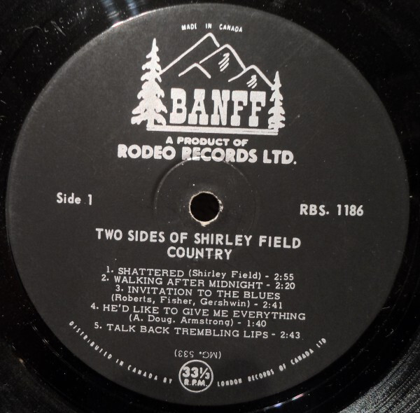 Throughout the 1960s, Shirley recorded a string of releases for the Rodeo/Banff and Melbourne labels — five singles in total between 1963 and 1969, alongside two full-length albums: The Two Sides of Shirley Field (Rodeo RBS-1186, 1963) and Yours Sincerely (Banff RBS-5309, 1969). Among her most collectible records is the 1965 Melbourne single “We’re Going Skiing” b/w “Ski Rock” (WG-3193), a rockabilly-inspired novelty cut that became a ski lodge favourite across Western Canada and remains a sought-after 45 among collectors today.
