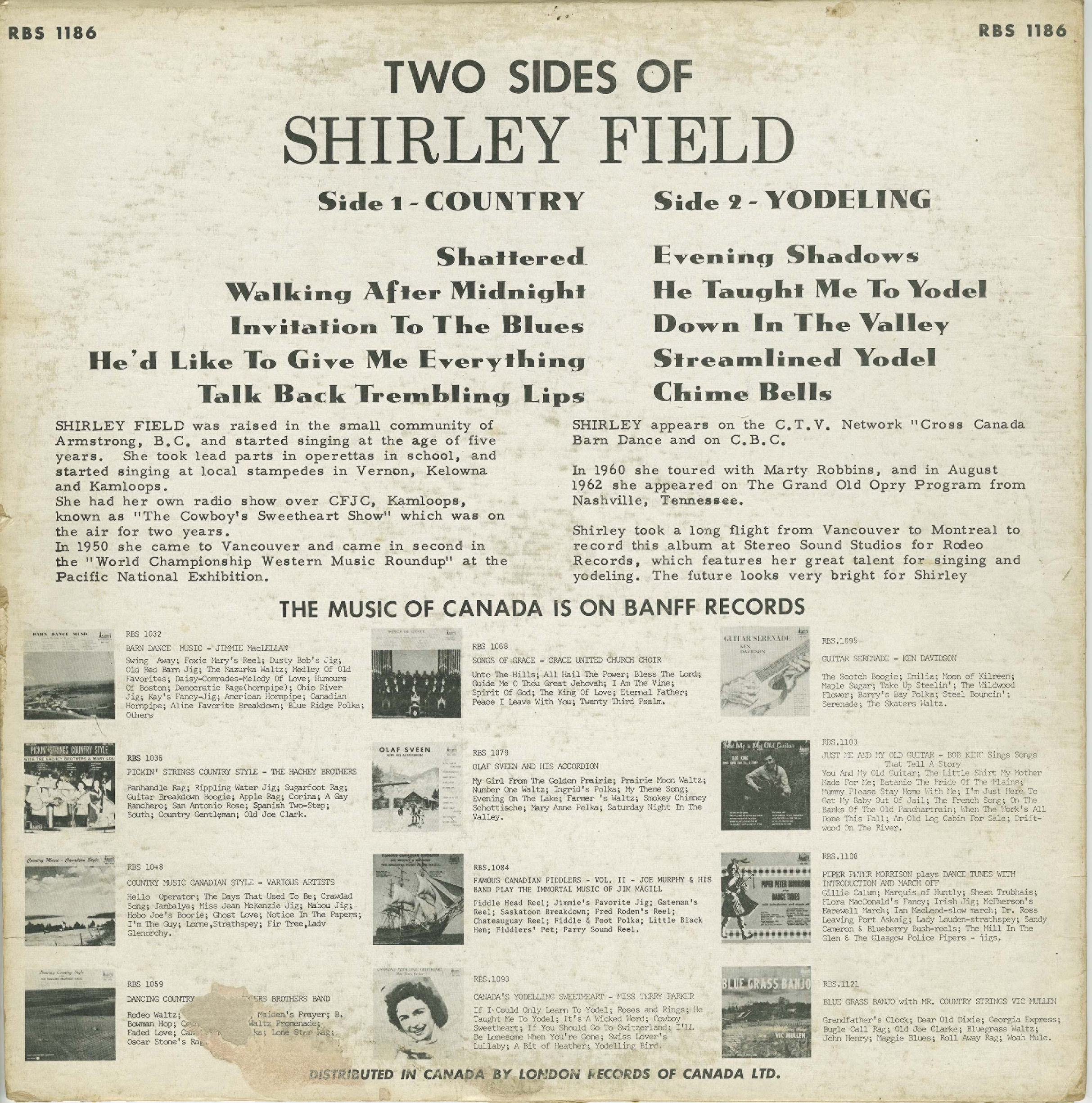 Shirley took a long flight from Vancouver to Montreal to record this album at Stereo Sound Studios for Rodeo Records, which features her great talent for singing and yodelling. The future looks very bright for Shirley.