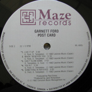 Garnett Ford is a Toronto singer who started his career in a band called Pinball during the '70s. Produced by Ian Thomas, Garnett released his first solo album 'Under The Influence' in 1978.