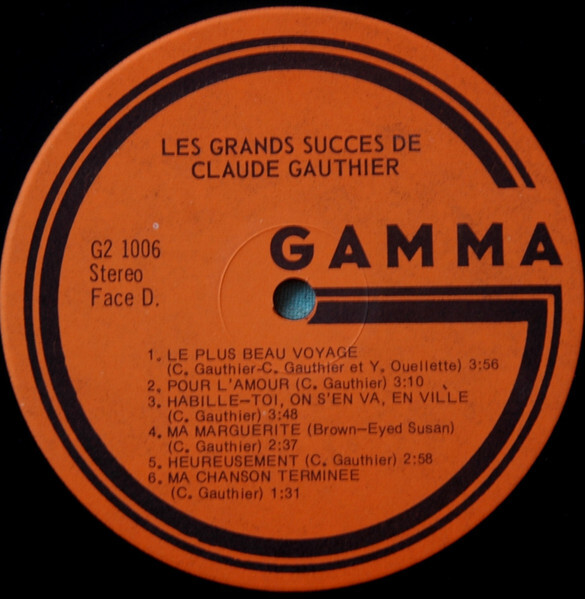 Les Grands succès de Claude Gauthier Disque 1 Face A