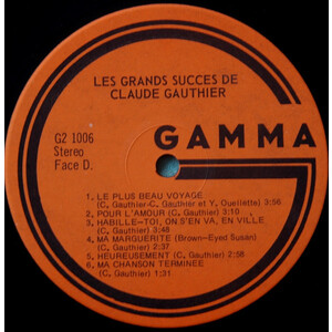Les Grands succès de Claude Gauthier Disque 2 Face D