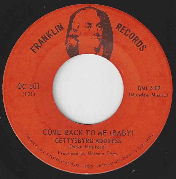 Gettysbyrg Address - Come Back to Me (Baby) b/w You've Got to Let Me Know