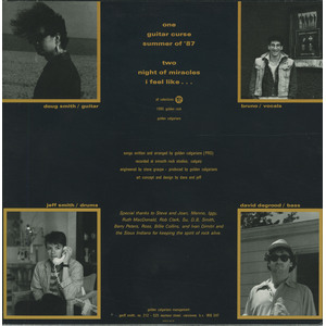 The Golden Calgarians began taking shape in northwest Calgary in the late 1970s, when Queen Elizabeth High School classmates Geoff “Jeff” Smith and a charismatic, sharp-tongued singer known simply as Bruno formed a band called The Remains. The name was a teenage nod to the Ramones, their earliest heroes, but the group quickly grew beyond punk imitation. By 1980 they had abandoned their morbid moniker, adopted the name The Golden Calgarians, and settled into the combination of humour, fuzz-blasted guitar, and prairie suburban absurdism that defined them for the next half-decade.