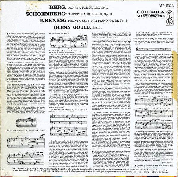 Gould, Glenn - Berg: Sonata for Piano, Op. 1; Schonberg: Three Piano Pieces, Op. 11; Krenek: Sonata No. 3 for Piano, Op. 92, No. 4